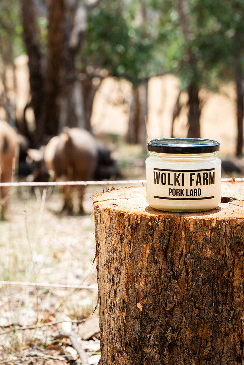 Handmade on Wolki Farm, Grass-Fed Pork Lard is honest, regenerative food — crafted from pasture-raised pigs and designed for people who care about real ingredients and the way they cook.